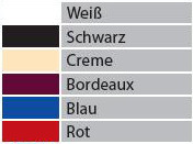 | Farben | Je 6 Farben für Husse und Tischplattenbezug |