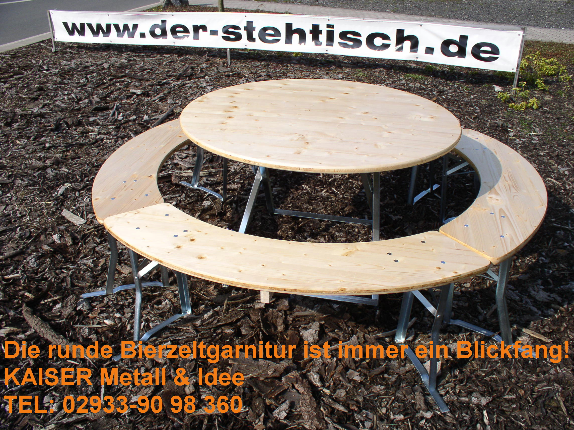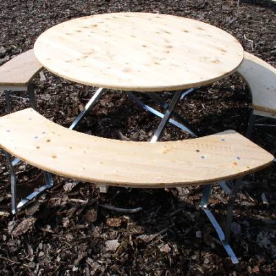 Ob für Firmenfeiern, Gartenfeste oder Einsatzbereiche im Eventgeschäft – die RBZ-120-3 verbindet hohe Belastbarkeit mit einem zeitlosen Design. Die Mehrschichtplatten aus robustem Holz sind mehrfach lackiert, wodurch sie besonders widerstandsfähig gegenüber Abnutzung und Witterungseinflüssen sind. Auch häufige Auf- und Abbauten stellen für diese Garnitur kein Problem dar. Durch die ergonomische Rundform entsteht ein harmonisches Gesamtbild, das bei Gästen einen einladenden Eindruck hinterlässt.