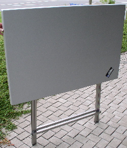 Der ST-Ettelsberg Stehtisch bietet eine hohe Standfestigkeit, dank der stabilen Standfüßchen aus Vollkunststoff, die sicher vernietet sind, sodass sie nicht verloren gehen können. Der Tisch lässt sich schmal zusammenklappen und wird mit einer inneren Schraube sicher im zusammengeklappten Zustand fixiert. Das verhindert ungewolltes Aufklappen, sodass Sie den Tisch problemlos transportieren können.