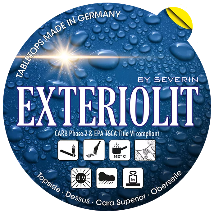 Dank der innovativen Exteriolit-Technologie bietet die Tischplatte eine hervorragende Kombination aus Stabilität und geringem Gewicht. Der hochwertige Pappel-Furnierkern sorgt für Formstabilität, während die robuste HPL-Beschichtung die Oberfläche effektiv schützt.